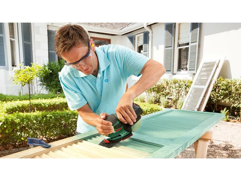 Mit diesem Akku-Multischleifer bekommen Sie ein Werkzeug, welches sich zum Schleifen verschiedenster Oberflächen eignet. Das Gerät ist kompakt und trotzdem kraftvoll dank dem mitgelieferten 18V-Akkupack der Power4all-Serie. Das eingebaute Staubsaugelement saugt den Staub direkt in die Microfilter Box und stellt so auch die Sauberkeit beim arbeiten sicher. Der Klettverschluss ermöglicht Ihnen einen schnellen und bequemen Schleifblattwechsel und die Zweigeteilte Schleifplatte bildet die Voraussetzung für eine optimale Ausnutzung des Schleifpapiers, da dadurch die Deltaspitze des Schleifpapiers und der Schleifplatte mühelos abgelöst und gedreht werden kann. Ein Anschluss für einen Staubsauger müssen Sie ebenso nicht missen.