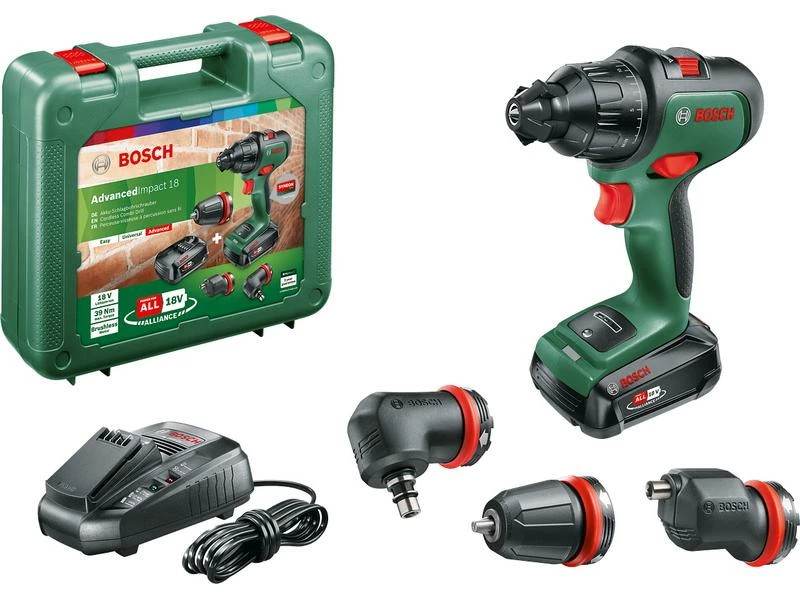 Der Bosch Zweigang-Akku-Schlagbohrschrauber AdvancedImpact 18 ist intuitiv in der Bedienung und vielseitig einsetzbar für jede Anwendung. Damit können die unterschiedlichsten Aufgaben in den Bereichen Holz, Kunststoff und Metall ausgeführt werden. Die Wahl des gewünschten Modus zum automatischen Einstellen der Gänge zum Schrauben oder Bohren ist einfach. Dank des innovativen elektronischen Schaltsystems mit LED-Licht kann die Drehrichtung mit einem einfachen Klick gewechselt werden. Der bürstenlose Motor bietet Leistung, Kompaktheit und Langlebigkeit. Dank einer Magnetkappe zum Schrauben und einem 13-mm-Futter zum Bohren gestaltet sich der Wechsel zwischen den Anwendungsbereichen noch einfacher.
