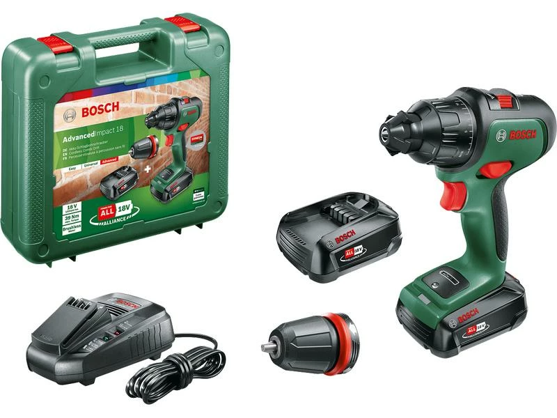 Der Bosch Zweigang-Akku-Schlagbohrschrauber AdvancedImpact 18 ist intuitiv in der Bedienung und vielseitig einsetzbar für jede Anwendung. Damit können die unterschiedlichsten Aufgaben in den Bereichen Holz, Kunststoff und Metall ausgeführt werden. Die Wahl des gewünschten Modus zum automatischen Einstellen der Gänge zum Schrauben oder Bohren ist einfach. Dank des innovativen elektronischen Schaltsystems mit LED-Licht kann die Drehrichtung mit einem einfachen Klick gewechselt werden. Der bürstenlose Motor bietet Leistung, Kompaktheit und Langlebigkeit. Dank einer Magnetkappe zum Schrauben und einem 13-mm-Futter zum Bohren gestaltet sich der Wechsel zwischen den Anwendungsbereichen noch einfacher.
