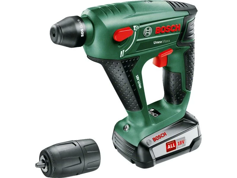 Der Bosch Akku-Bohrhammer Uneo Maxx kombiniert drei Werkzeuge in einem. Nutzen Sie das Gerät zum Schrauben, Bohren und Hämmern. Das pneumatische Hammerwerk überzeugt mit einer Schlagstärke von 0.5 J. Die Akkunutzung macht ihn zum idealen Begleiter für mobile Einsätze. Ob auf der Baustelle oder für das heimische Bauprojekt, für den Akku-Bohrhammer gibt es immer etwas zu tun. Das hochwertige Getriebe erlaubt ein Schrauben bis zu einem Durchmesser von 6 mm und das Bohren von Löchern in Beton mit bis zu 10 mm Durchmesser.