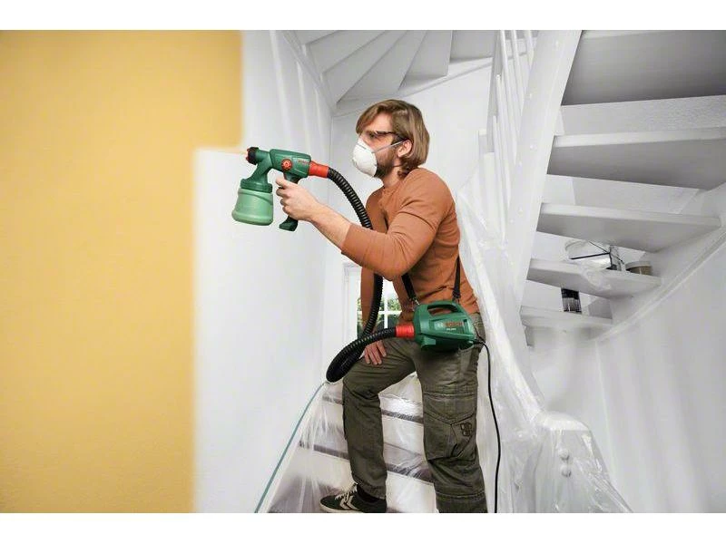 Mit dem Feinsprühsystem PFS 2000 färben Sie Ihre Wohnung schneller als mit dem Pinsel. Dank der hohen Zerstäubungsleistung wird die Farbe gleichmässig aufgetragen und es bilden sich keine Tropfen. Die Farbmengenregulierung und die Sprühmustereinstellungen bieten Ihnen für jede Situation den richtigen Anstrich. Sie können vertikal, horizontal oder mit Punktmuster sprühen und dabei entweder alte Farbe überdecken, oder mit niedriger Intensität sprühen um die Struktur der Maserung zu erhalten. Zudem kann dank der ALLPaint Technologie jede Art von Farbe versprüht werden.