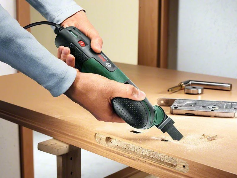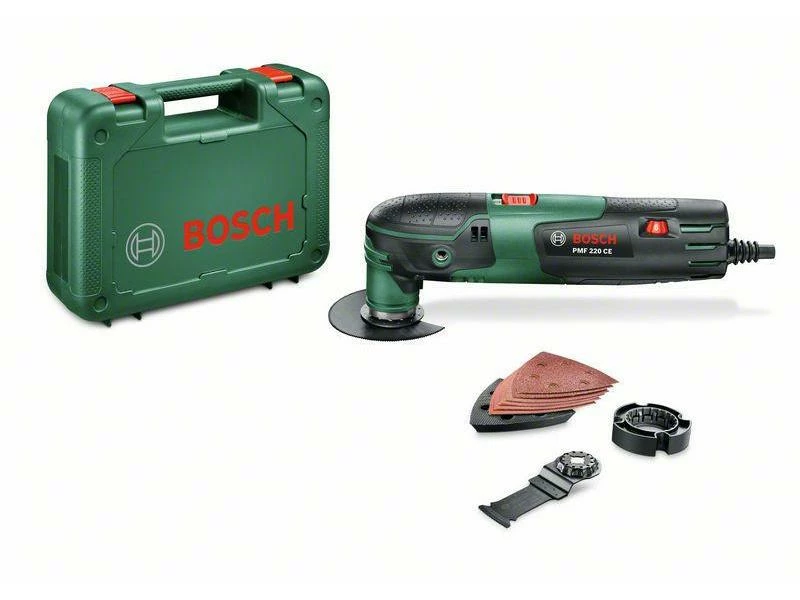Mit dem Multifunktionswerkzeug PMF 220 CE von Bosch sind Sie für eine Vielzahl an Aufgaben gewappnet. Die zahlreichen kompatiblen Aufsätze ermöglichen Ihnen das Sägen, Trennen, Fräsen, Schleifen sowie Schaben von verschiedensten Materialien. Der kraftvolle 220 Watt-Motor ist mit der Constant Electronic ausgestattet, die eine maximale Leistungsabgabe auch unter Last garantiert. Auf Wunsch rüsten Sie das Multifunktionswerkzeug mit einem optional erhältlichen Zusatzhandgriff aus, der eine noch bessere Kontrolle ermöglicht.