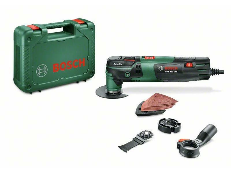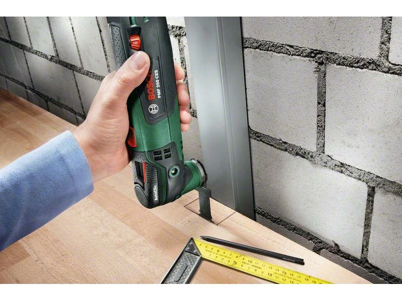 Mit dem Multifunktionswerkzeug PMF 250 CES von Bosch sind Sie für eine Vielzahl an Aufgaben gewappnet. Die zahlreichen kompatiblen Aufsätze ermöglichen Ihnen das Sägen, Trennen, Fräsen, Schleifen sowie Schaben von verschiedensten Materialien. Der kraftvolle 250 Watt-Motor ist mit der Constant Electronic ausgestattet, die eine maximale Leistungsabgabe auch unter Last garantiert. Auf Wunsch rüsten Sie das Multifunktionswerkzeug mit einem optional erhältlichen Zusatzhandgriff aus, der eine noch bessere Kontrolle ermöglicht.