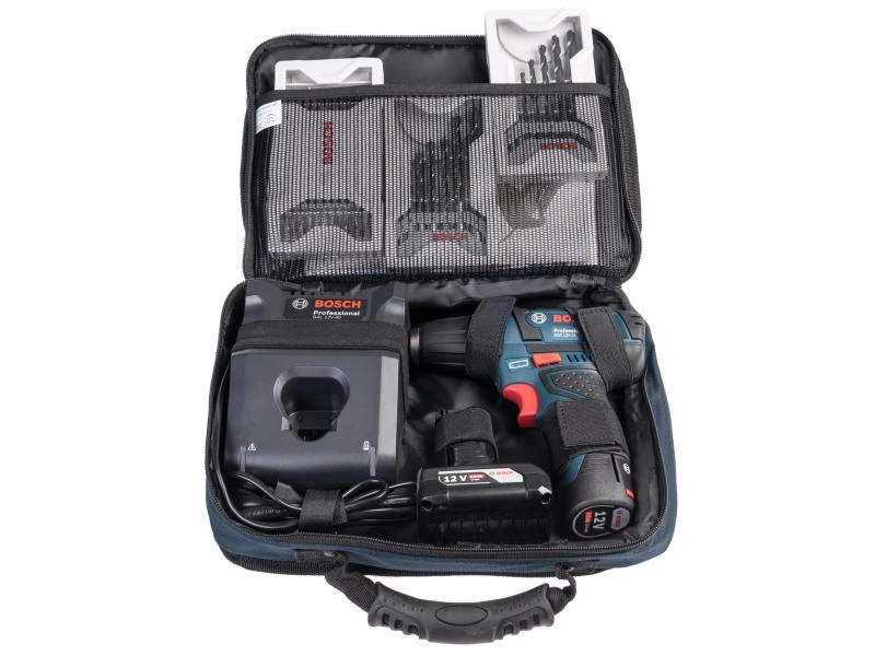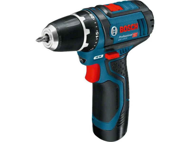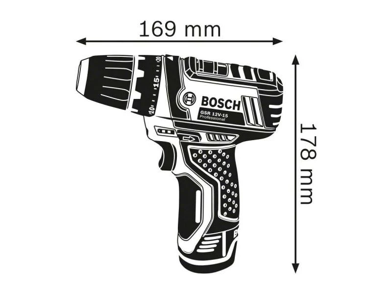 Der 12-Volt-Akku-Bohrschrauber GSR 12 V-15 von Bosch Professional ist ein handliches Kraftpaket. Seine mit 169 mm enorm kurze Bauform erleichtert Ihnen die Handhabung vor allem bei Bohr- und Schraubanwendungen über Kopf und an engen Stellen. Das 2-Gang-Getriebe sorgt für kraftvolle 15 nm Drehmoment im weichen Schraubfall und 30 nm beim Bohren. So gelingen Ihnen Löcher bis 19 mm das Festziehen von Schrauben bis 7 mm. Das vollwertige 10-mm-AutoLock-Bohrfutter erleichtert den Werkzeugwechsel und dank der Motorbremse bewältigen Sie das präzise Arbeiten bei Serienverschraubungen problemlos. Das integrierte LED-Licht zur Beleuchtung des Arbeitsbereichs auch an dunklen Stellen und die praktische Batterie-Ladezustandsanzeige mit 3 LEDs runden die vollständige Ausstattung ab.