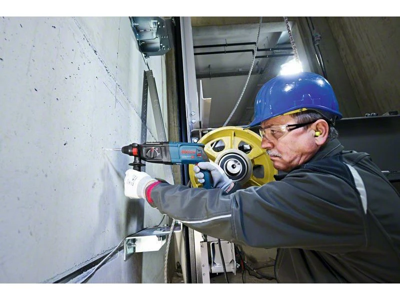 Dieses Elektrowerkzeug eignet sich zum Bohren und Meisseln in Beton, Mauerwerk, Holz und Metall. Es ist kompatibel mit verschiedenen Systemzubehören zur Staubabsaugung. Ausserdem verfügt der GBH 2-26 Professional über Funktionen wie Rechts-/Links-Lauf, Überlastkupplung, variable Drehzahl und Vario-Lock.