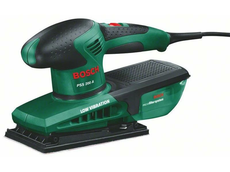 Der PSS 200 A von Bosch ist die ideale Lösung für feinsten Schliff und schnellen Schleiffortschritt mit leistungsstarkem 200-Watt-Motor und einer Schleiffläche von 92 x 182 mm. Das System ermöglicht Ihnen sauberes Arbeiten dank Bosch Micro Filtersystem, bei welchem ein eingebautes Staubsaugelement den Staub direkt in die mitgelieferte Microfilter Box saugt.