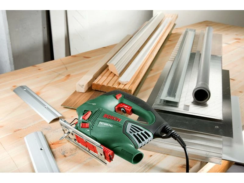 Die Bosch Stichsäge PST 900 PEL ist für professionelle Hand- und Heimwerker eine gute Wahl. Das Gerät überzeugt mit einer starken Leistung und einem weiten Einsatzbereich. Die Stichsäge ist mit einem integrierten Stellrad zur Hubzahlvorwahl ausgestattet, was ein materialgerechtes Arbeiten mit nur einem Handgriff ermöglicht.