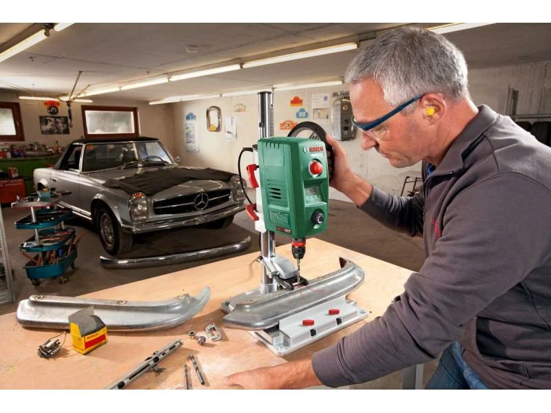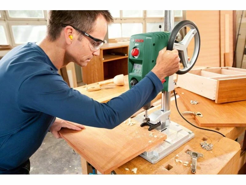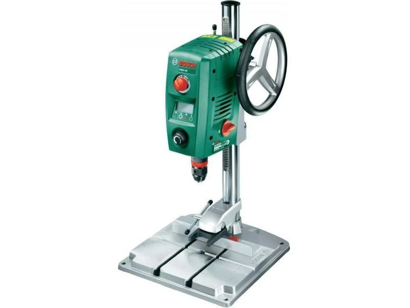 Die Tischbohrmaschine PBD 40 von Bosch setzt in Sachen Präzision und Handhabung neue Massstäbe. Der maximale Bohrhub der PBD 40 beträgt 90 mm, in Holz können Durchmesser bis 40 mm gebohrt werden, bei Stahl sind max. 13 mm möglich. Der Bohrer wird per Stellrad abgesenkt.