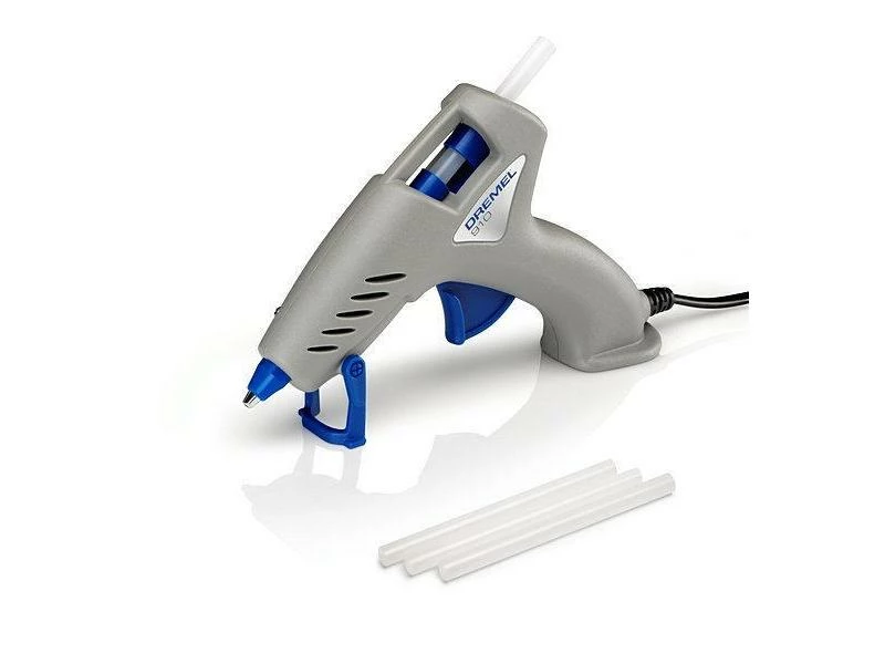 Die Dremel Heissklebepistole 910 eignet sich optimal für das Kleben von hitzeunempfindlichen Materialen. Durch die tropfsichere Präzisionsdüse und den ergonomisch geformten T-Handgriff ist eine präzise und saubere Anwendung bei leichten Heimwerkarbeiten problemlos möglich. Für einen sicheren Stand ist mit dem ausklappbaren Standfuss gesorgt.