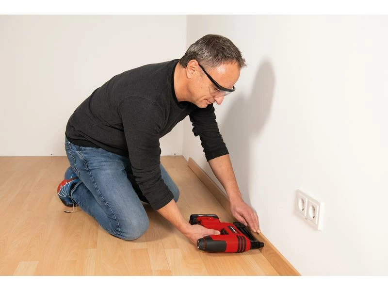 Das robuste Getriebe des Akku-Naglers TE-CN 18 Li – Solo ermöglicht bis zu 20 Einschläge pro Minute, während die Tiefeneinstellung für eine variable Einschlagtiefe sorgt. Durch die schlanke Tackernase ist das nahe Arbeiten an den Kanten möglich und sein Druckmechanismus gewährt ein sicheres Arbeiten. Die grosszügigen Softgrip-Flächen bieten einen bequemen und festen Halt. Das Magazin des Werkzeugs ist mit einer Füllstandsanzeige ausgestattet. Die Lieferung erfolgt inklusive praktischem Gürtelclip zur sicheren Aufbewahrung sowie inklusive 300 Nägeln (32 mm) und 300 Klammern (19 mm).