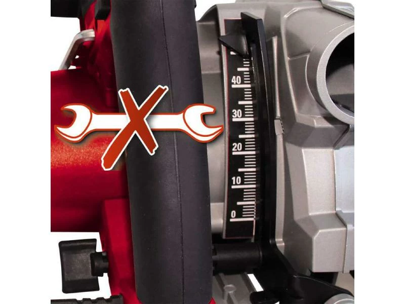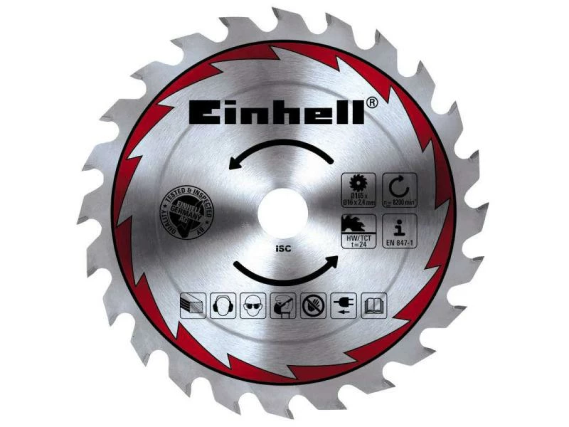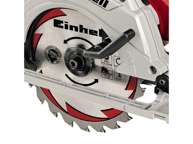 Die Einhell TE-CS 165 ist eine kraftvolle 1200 Watt Handkreissäge, mit der Sie Sägearbeiten an Holz, holzähnlichen Werkstoffen und Kunststoffen durchführen können. Sie ist dank einem hochwertigen Hartmetall-Sägeblatt perfekt für schnelle, geradlinige Schnitte, wahlweise senkrecht oder um bis zu 45° seitlich geneigt. Die Sägeblattarretierung erlaubt einen sehr leichten Sägeblattwechsel. Der Schlüssel für den Blattwechsel befindet sich direkt am Gehäuse.