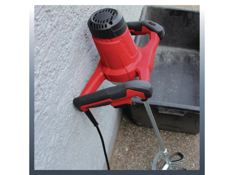 Der Farb-/Mörtelrührer TC-MX 1600-2 E von Einhell ist das ideale Gerät, um flüssige und pulverförmige Baustoffe anzumischen. Er ist mit einem 2-Gang-Getriebe und 1600 Watt starken Elektromotor ausgestattet. Zudem besitzt der Mörtelrührer eine dynamische Drehzahlregelung ohne Drehzahlrückgang unter Last, welche die Rührgeschwindigkeit auf die Konsistenz des jeweiligen Mischguts anpasst. Ausserdem verfügt der TC-MX 1600-2 E über einen arretierbaren Betriebsschalter, welcher einen komfortablen Dauerbetrieb ermöglicht, ein robustes Gummikabel für ausreichend Bewegungsradius sowie einen grossen, ergonomischen Griffbügel. Die praktische Rühraufnahme erlaubt den Betrieb mit allen handelsüblichen Rührwerkzeugen, die ein M14 Gewinde haben.