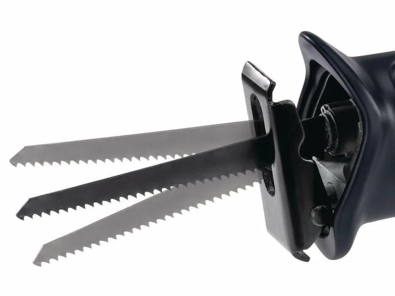Durch eine einfache Betätigung des entsprechenden Hebels wechseln Sie die Sägeblätter – ohne jedes Werkzeug und in nur wenigen Sekunden. Auch der Sägeschuh lässt sich werkzeuglos ausziehen, wordurch sich die Schneide des Sägeblatts besser ausnutzen lässt.