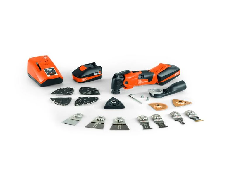 Das effektive und leistungsstarke Akku MultiTool für schnellen Arbeitsfortschritt bei Ausbau und Renovierung, mit über 30 Zubehöteilen – zum Sägen in Holz und Metall, Schleifen, Fliesen austrennen und vieles mehr.