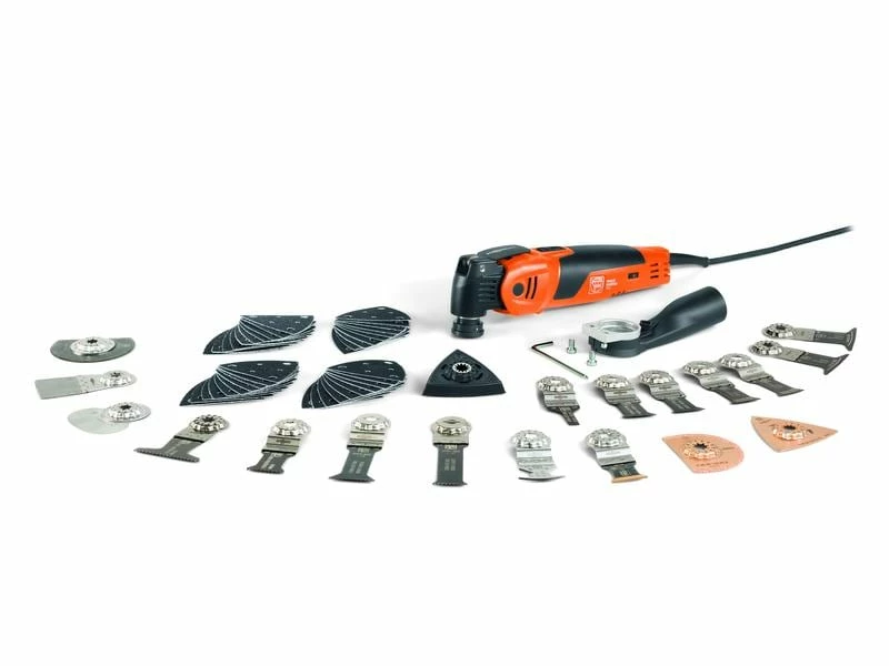 Umfangreiches MultiTool für schnellen Arbeitsfortschritt bei Ausbau und Renovierung. Mit 60 Zubehörteilen – zum Sägen in Holz, Metall, Kunststoffe, zum Austrennen von Fliesen, Schneiden von Silikonfugen und Teppichen, zum Entfernen von Klebstoffresten und Abtragen von Fliesenkleber.