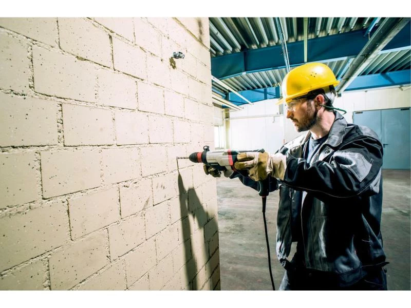 Mit einem Bohrhammer bohren Sie Löcher in mineralische Materialien, beispielsweise Stein oder Beton, ohne jegliche Mühe. Die hohe Schlagenergie des Bohrers zermürbt das Material und durch eine Drehbewegung bricht das Material aus. Einige Bohrhammer sind auch mit feststehenden Werkzeugeinsätzen, wie zum Beispiel Meissel, ausstattbar. Dadurch sind Sie zusätzlich in der Lage Fundamente, Decken oder andere Baukonstruktionen aufzureissen, abzubrechen oder zu meisseln.