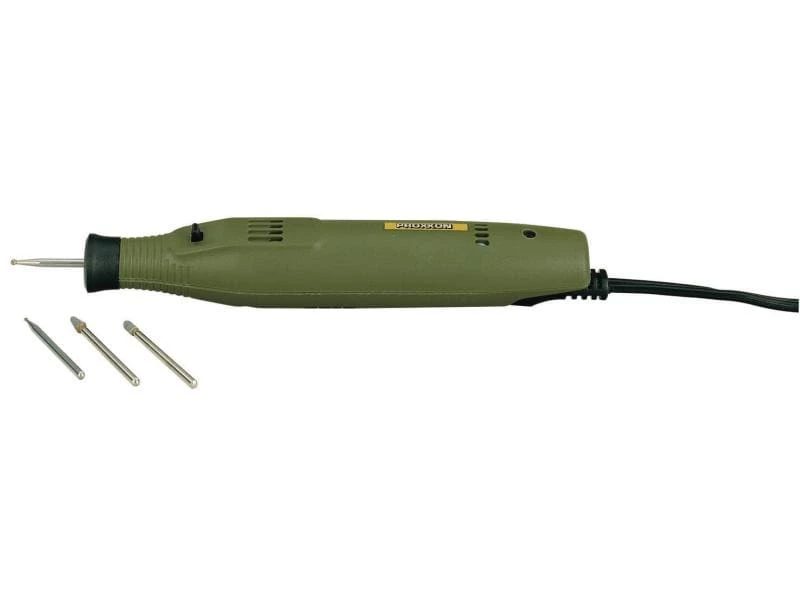 Das GG12 von Proxxon ist ein Graviergerät, mit dem Sie Gravurarbeiten aller Art ausführen können. Sein DC-Spezialmotor arbeitet leise und ist langlebig. Das Gehäuse besteht aus glasfaserverstärktem Polyamid.
