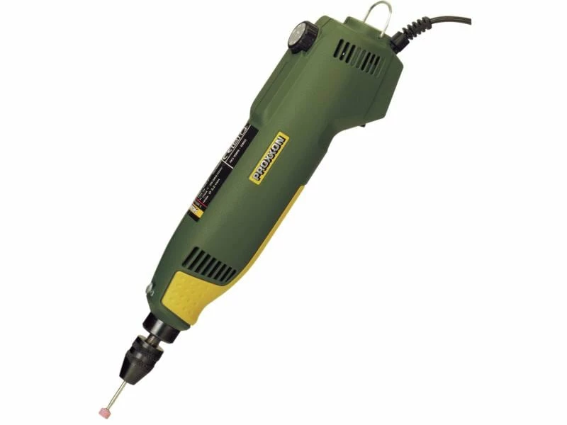 Die FBS 240/E von Proxxon eignet sich zum Feinbohren, Bürsten und Polieren. Die Höchstdrehzahl von 20’000 Umdrehungen pro Minute kann durch Vollwellenelektronik auf 5000 U/min stufenlos zurückgeführt werden – Bei fast gleichem Drehmoment im unteren Drehzahlbereich.