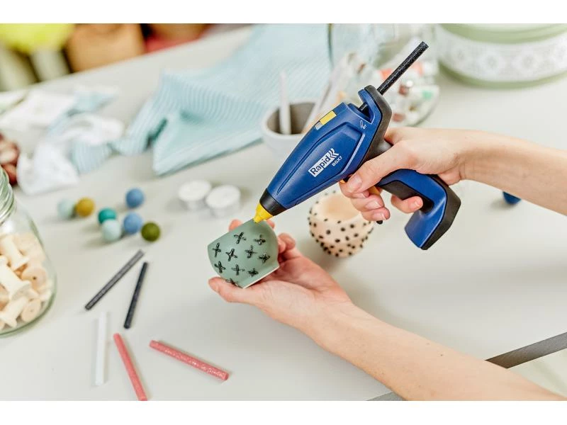 Die BGX7 ist eine akkubetriebene Klebepistole, die sich besonders gut zum Basteln und Dekorieren sowie für kleinere Reparaturen eignet. Mit kann 30 Min. lang ohne Aufladen gearbeitet werden und die Aufheizzeit beträgt nur 20 Sek. Die BGX7 verfügt über eine praktische automatische Abschaltfunktion, die die Akkulaufzeit erhöht. Sie sorgt auch für erhöhte Sicherheit, weil das Gerät nicht versehentlich eingeschaltet bleibt. Intelligente Ergonomie, einschliesslich eines Griffs mit Softgrip sowie eines langen, gummierten Abzugs, optimiert den Benutzerkomfort und die Bedienungsfreundlichkeit, während eine Gummibasis die Stabilität erhöht, wenn die Klebepistole auf einer Arbeitsfläche steht. Die BGX7 wird von einer 3,6-V-Batterie gespeist und kann über den praktischen Micro-USB-Anschluss in weniger als zwei Stunden aufgeladen werden.