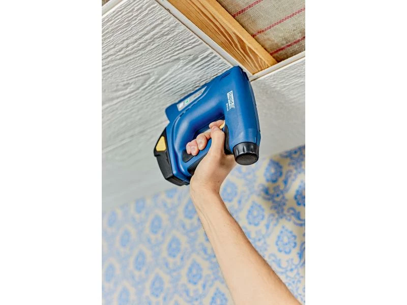 Dieser Akkutacker ist ideal für Arbeiten, die Bewegungsfreiheit erfordern. Der BTX140 verarbeitet mehr als 1300 Heftklammern mit einer Akkuladung mit einer Geschwindigkeit, die die meisten anderen akkubetriebenen Tacker auf dem Markt übertrifft. Ideal für den täglichen Gebrauch und zum Befestigen von dünnen Holzbrettern sowie von Baumaterialien wie Isolierfolie, Dampfschutz, Plastikfolie, Pappe, Papier und anderen Materialien, die einen guten Halt durch die Klammer erfordern. Die hohe Akkuleistung mit einem 7,2-V-Li-Ion-Akku und das schnelle Aufladen erhöhen die Arbeitseffizienz, während robuste Teile und eine hochwertige Konstruktion die Lebensdauer verlängern. Mit praktischer Sicherheitsnase, die ein versehentliches Auslösen verhindert, und Klammerstandsanzeige für effizientes Nachladen. Er wird in einem praktischen Koffer für Aufbewahrung und Transport geliefert. Der Koffer beinhaltet eine Schnellstartanleitung für die richtige Benutzung des Tackers und für die Wahl der richtigen Klammer, wenn es Zeit für den Nachkauf ist.