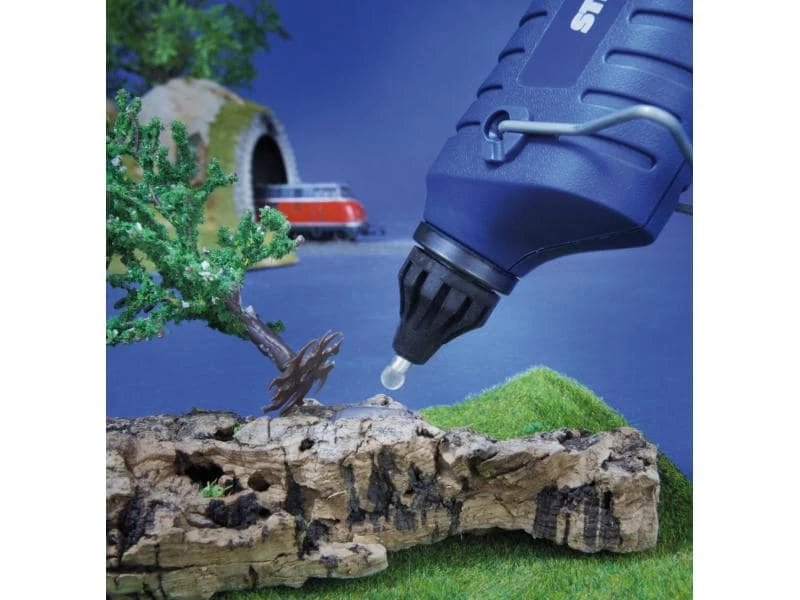 Mit der Heissklebepistole Gluematic 3002 gibt es keinen Grund mehr, auf das moderne und vielseitige Klebeverfahren zu verzichten. Die einfache Handhabung macht dieses Gerät zur ersten Wahl für qualitätsbewusste Haushalte. Hohe Schmelzleistung, wechselbare Düsen und eine elektronische Temperatursteuerung gewährleisten einfaches und sauberes Arbeiten. Die Klebestelle ist schon nach zwei Minuten fest und belastbar.